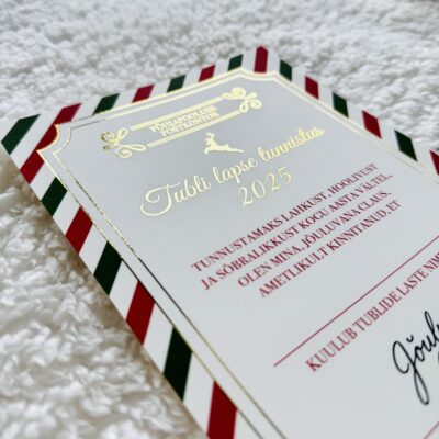 Ükskõik, kas valid personaalse kirja, uhke tunnistuse või kogu piduliku kingikarbi – igaüks neist on omaette elamus, mis loob jõuluootusest erilise kogemuse ning kingib lapsele usu imedesse, mida ta ei unusta kogu eluks.